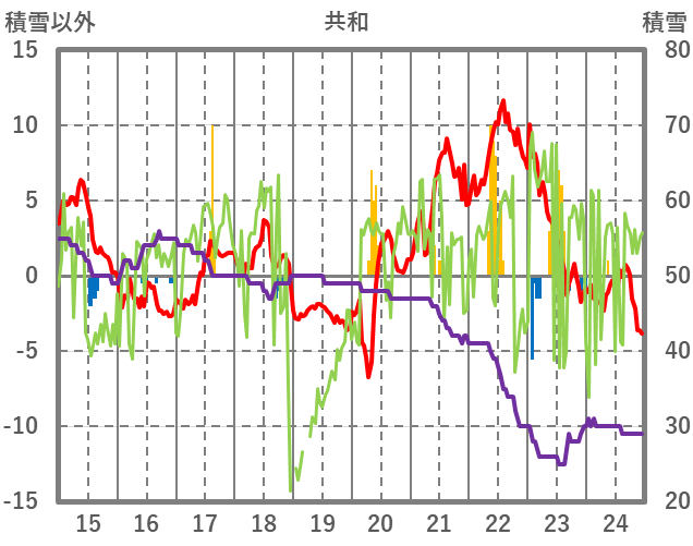 | 日 | 時 | 気温 | 降水 | 風向/風速 | 日照 | 積雪 | 降雪 |