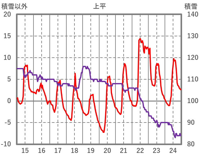 | 日 | 時 | 気温 | 降水 | 風向/風速 | 日照 | 積雪 | 降雪 |
