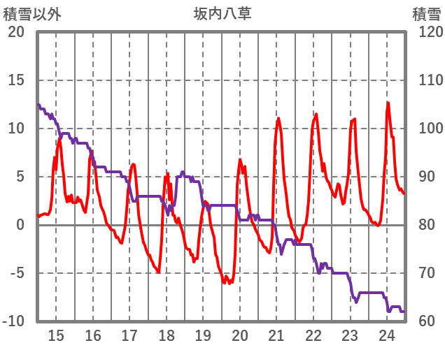 | 日 | 時 | 気温 | 降水 | 風向/風速 | 日照 | 積雪 | 降雪 |