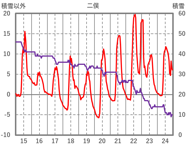 | 日 | 時 | 気温 | 降水 | 風向/風速 | 日照 | 積雪 | 降雪 |
