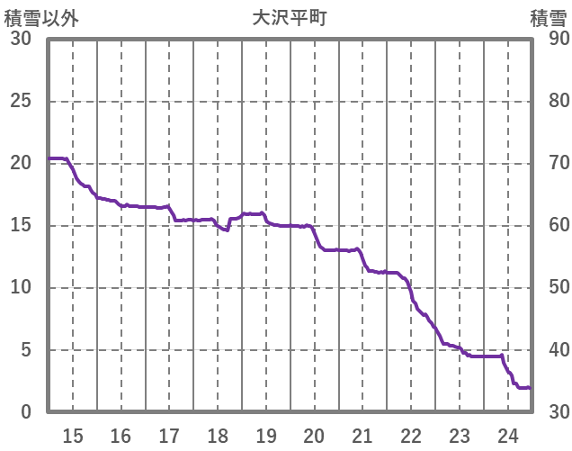 | 日 | 時 | 気温 | 降水 | 風向/風速 | 日照 | 積雪 | 降雪 |