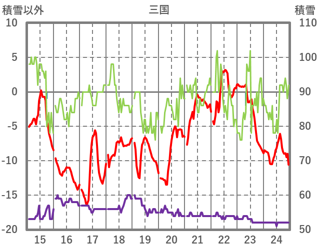 | 日 | 時 | 気温 | 降水 | 風向/風速 | 日照 | 積雪 | 降雪 |