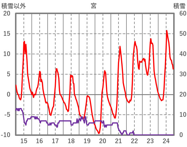 | 日 | 時 | 気温 | 降水 | 風向/風速 | 日照 | 積雪 | 降雪 |