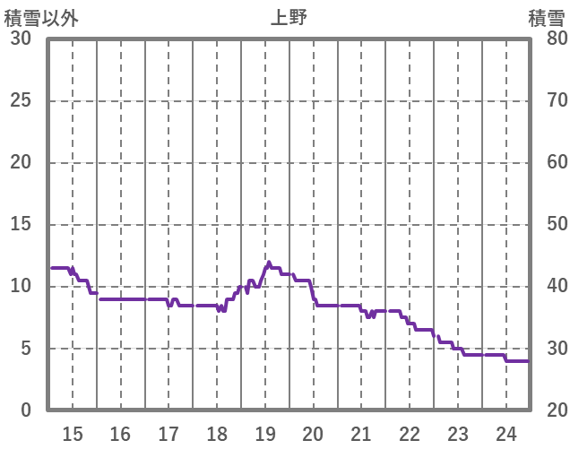 | 日 | 時 | 気温 | 降水 | 風向/風速 | 日照 | 積雪 | 降雪 |