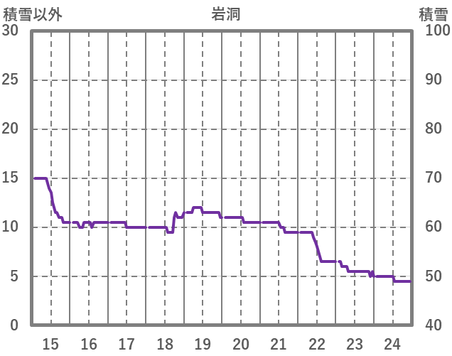 | 日 | 時 | 気温 | 降水 | 風向/風速 | 日照 | 積雪 | 降雪 |