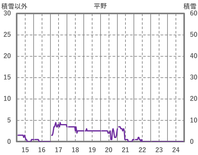 | 日 | 時 | 気温 | 降水 | 風向/風速 | 日照 | 積雪 | 降雪 |