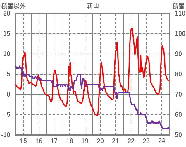 | 日 | 時 | 気温 | 降水 | 風向/風速 | 日照 | 積雪 | 降雪 |