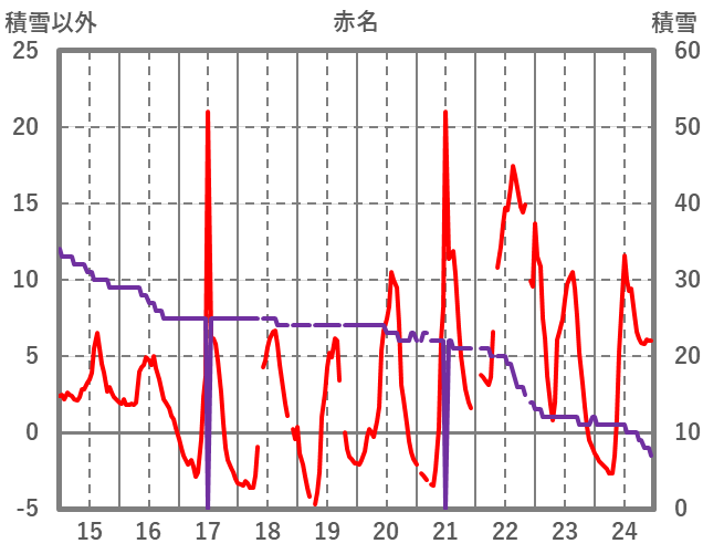 | 日 | 時 | 気温 | 降水 | 風向/風速 | 日照 | 積雪 | 降雪 |