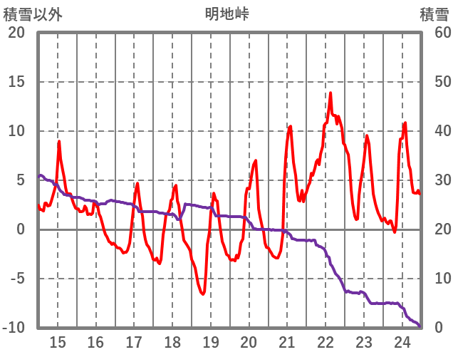 | 日 | 時 | 気温 | 降水 | 風向/風速 | 日照 | 積雪 | 降雪 |