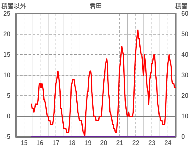 | 日 | 時 | 気温 | 降水 | 風向/風速 | 日照 | 積雪 | 降雪 |