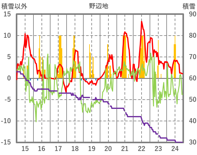 | 日 | 時 | 気温 | 降水 | 風向/風速 | 日照 | 積雪 | 降雪 |