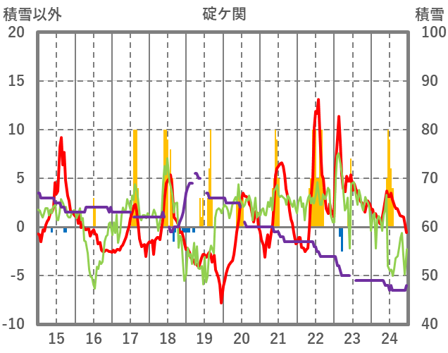 | 日 | 時 | 気温 | 降水 | 風向/風速 | 日照 | 積雪 | 降雪 |