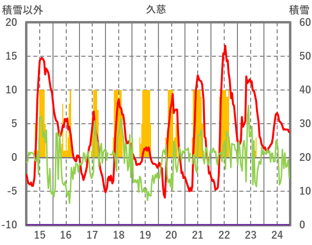 | 日 | 時 | 気温 | 降水 | 風向/風速 | 日照 | 積雪 | 降雪 |