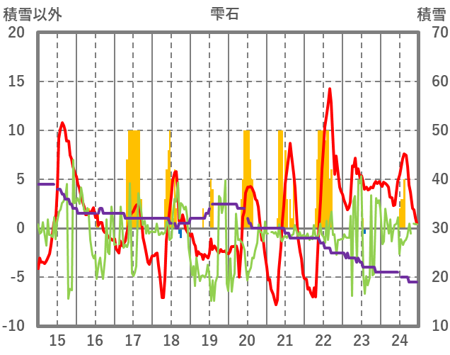 | 日 | 時 | 気温 | 降水 | 風向/風速 | 日照 | 積雪 | 降雪 |