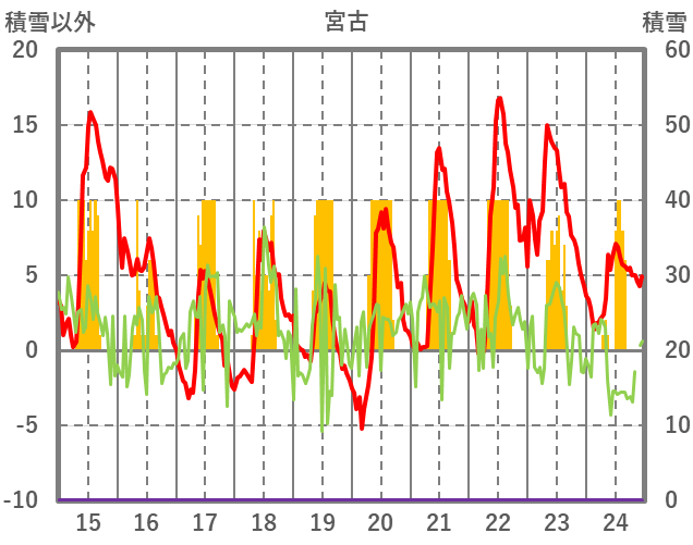 | 日 | 時 | 気温 | 降水 | 風向/風速 | 日照 | 積雪 | 降雪 |