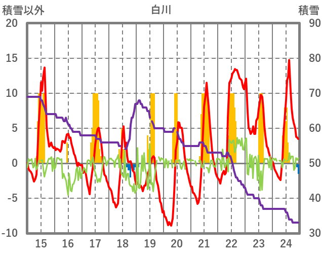 | 日 | 時 | 気温 | 降水 | 風向/風速 | 日照 | 積雪 | 降雪 |