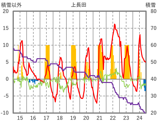 | 日 | 時 | 気温 | 降水 | 風向/風速 | 日照 | 積雪 | 降雪 |