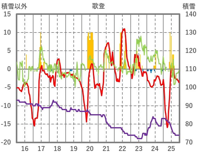 | 日 | 時 | 気温 | 降水 | 風向/風速 | 日照 | 積雪 | 降雪 |