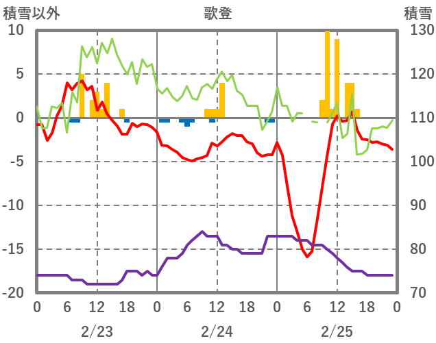 | 日 | 時 | 気温 | 降水 | 風向/風速 | 日照 | 積雪 | 降雪 |