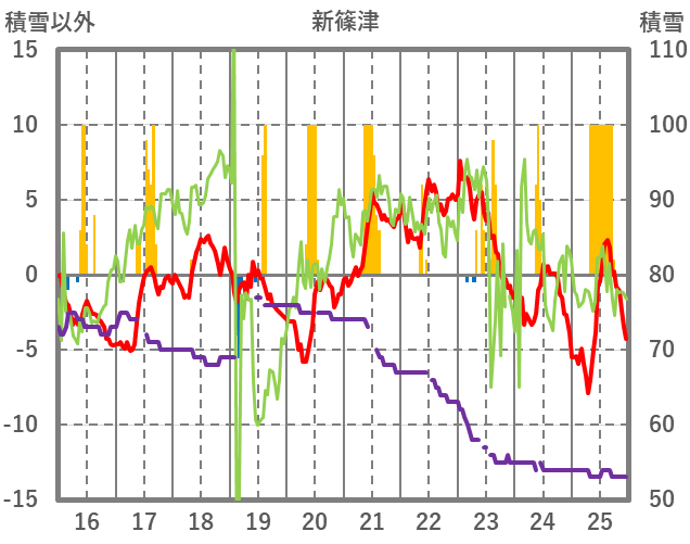 | 日 | 時 | 気温 | 降水 | 風向/風速 | 日照 | 積雪 | 降雪 |