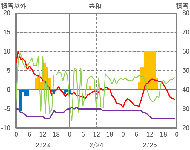 | 日 | 時 | 気温 | 降水 | 風向/風速 | 日照 | 積雪 | 降雪 |
