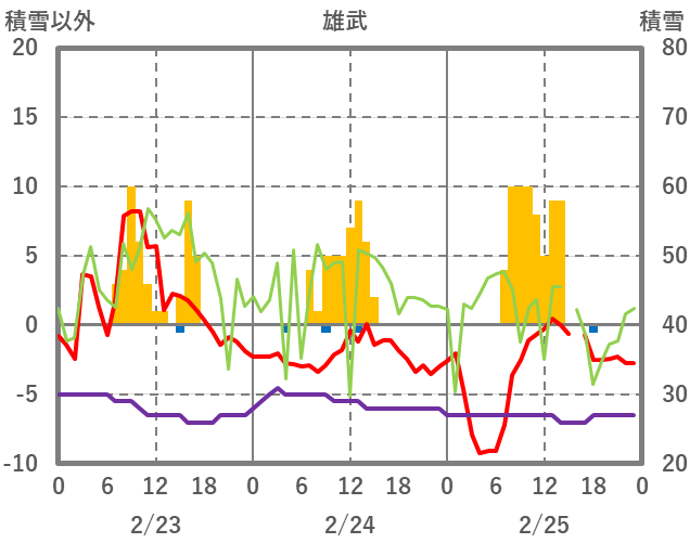 | 日 | 時 | 気温 | 降水 | 風向/風速 | 日照 | 積雪 | 降雪 |