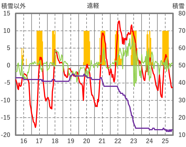 | 日 | 時 | 気温 | 降水 | 風向/風速 | 日照 | 積雪 | 降雪 |