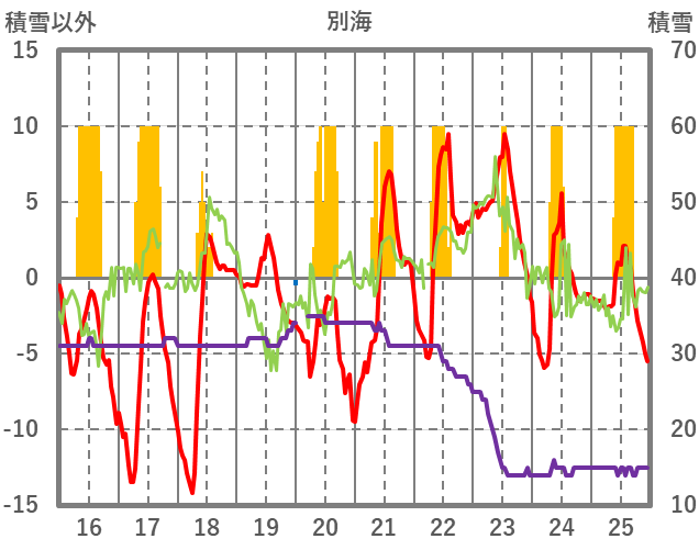 | 日 | 時 | 気温 | 降水 | 風向/風速 | 日照 | 積雪 | 降雪 |