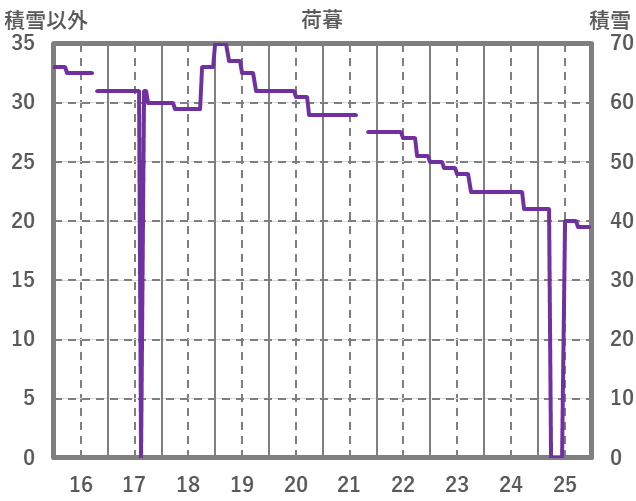 | 日 | 時 | 気温 | 降水 | 風向/風速 | 日照 | 積雪 | 降雪 |