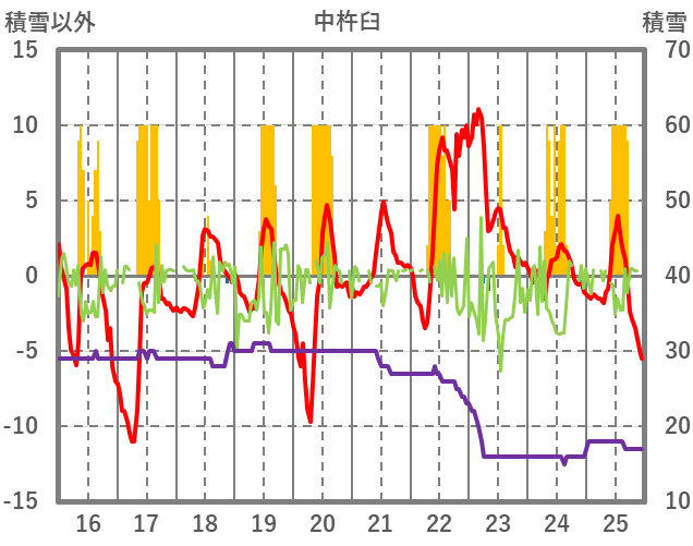 | 日 | 時 | 気温 | 降水 | 風向/風速 | 日照 | 積雪 | 降雪 |