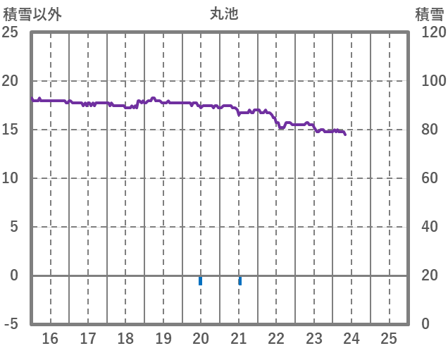 | 日 | 時 | 気温 | 降水 | 風向/風速 | 日照 | 積雪 | 降雪 |