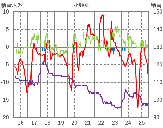 | 日 | 時 | 気温 | 降水 | 風向/風速 | 日照 | 積雪 | 降雪 |