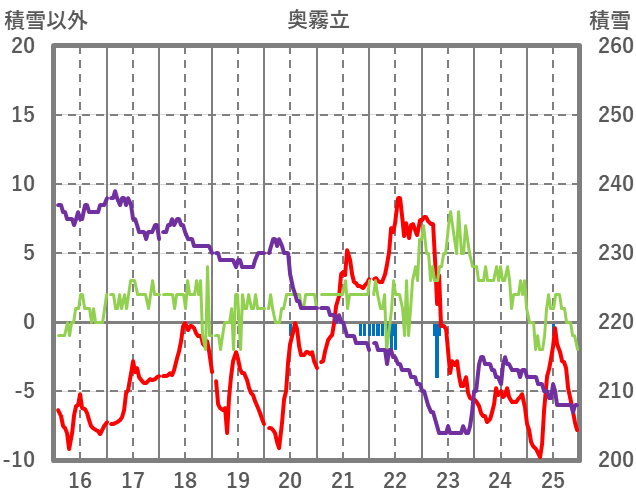 | 日 | 時 | 気温 | 降水 | 風向/風速 | 日照 | 積雪 | 降雪 |