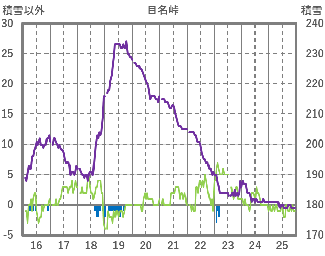 | 日 | 時 | 気温 | 降水 | 風向/風速 | 日照 | 積雪 | 降雪 |