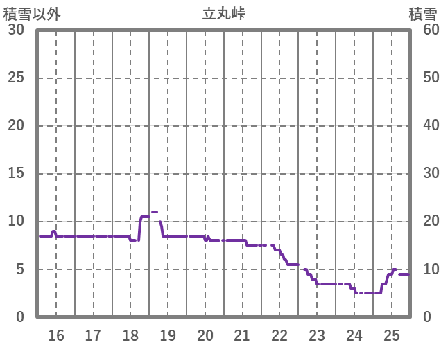 | 日 | 時 | 気温 | 降水 | 風向/風速 | 日照 | 積雪 | 降雪 |