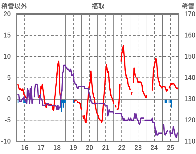 | 日 | 時 | 気温 | 降水 | 風向/風速 | 日照 | 積雪 | 降雪 |