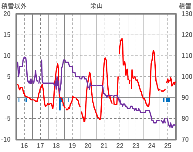 | 日 | 時 | 気温 | 降水 | 風向/風速 | 日照 | 積雪 | 降雪 |