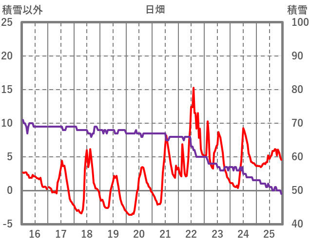 | 日 | 時 | 気温 | 降水 | 風向/風速 | 日照 | 積雪 | 降雪 |