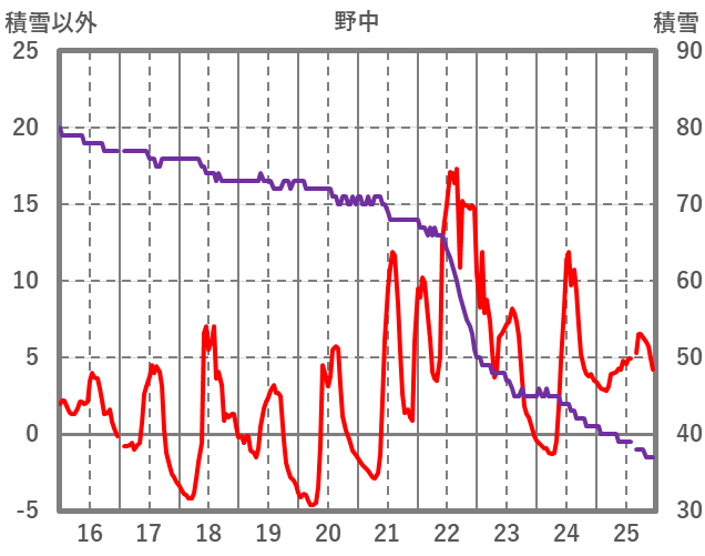 | 日 | 時 | 気温 | 降水 | 風向/風速 | 日照 | 積雪 | 降雪 |