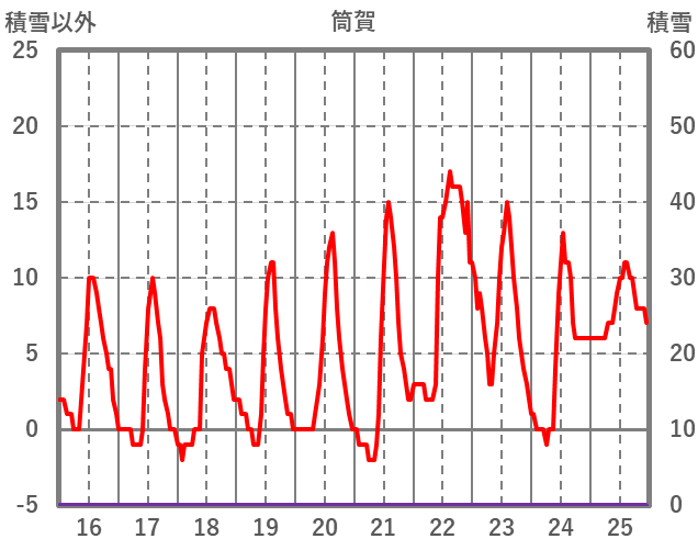 | 日 | 時 | 気温 | 降水 | 風向/風速 | 日照 | 積雪 | 降雪 |