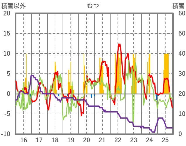 | 日 | 時 | 気温 | 降水 | 風向/風速 | 日照 | 積雪 | 降雪 |