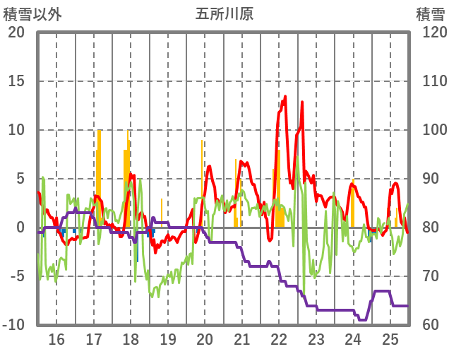 | 日 | 時 | 気温 | 降水 | 風向/風速 | 日照 | 積雪 | 降雪 |