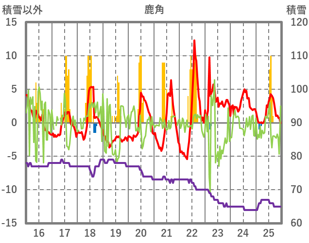 | 日 | 時 | 気温 | 降水 | 風向/風速 | 日照 | 積雪 | 降雪 |