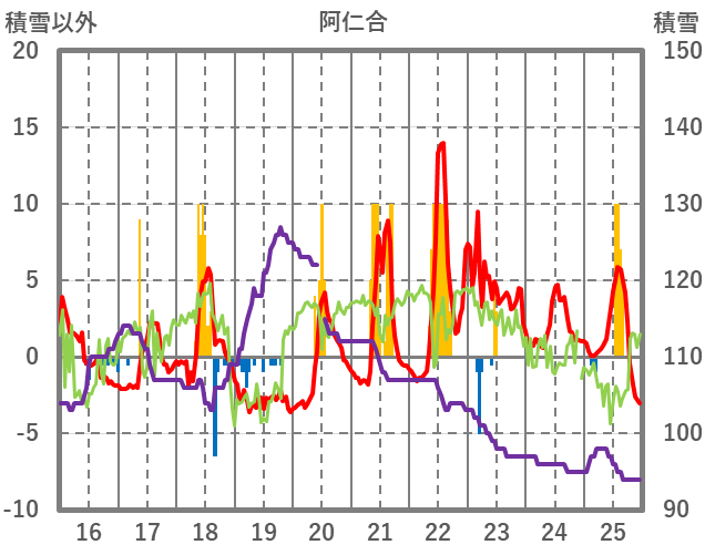 | 日 | 時 | 気温 | 降水 | 風向/風速 | 日照 | 積雪 | 降雪 |