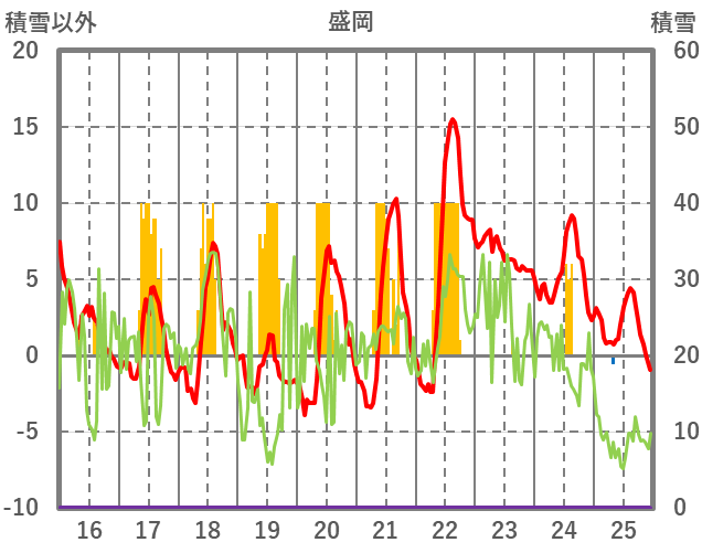 | 日 | 時 | 気温 | 降水 | 風向/風速 | 日照 | 積雪 | 降雪 |