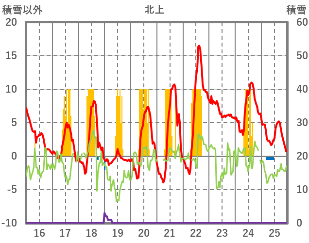 | 日 | 時 | 気温 | 降水 | 風向/風速 | 日照 | 積雪 | 降雪 |