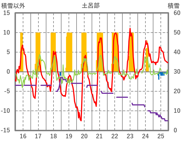 | 日 | 時 | 気温 | 降水 | 風向/風速 | 日照 | 積雪 | 降雪 |