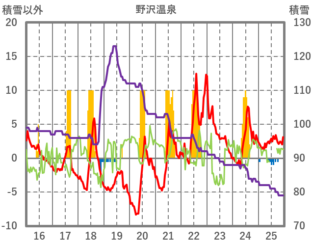 | 日 | 時 | 気温 | 降水 | 風向/風速 | 日照 | 積雪 | 降雪 |