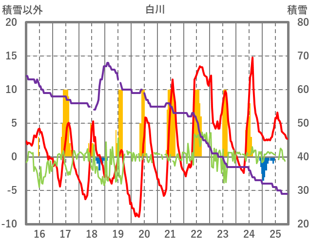 | 日 | 時 | 気温 | 降水 | 風向/風速 | 日照 | 積雪 | 降雪 |