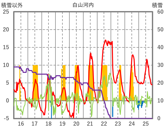 | 日 | 時 | 気温 | 降水 | 風向/風速 | 日照 | 積雪 | 降雪 |